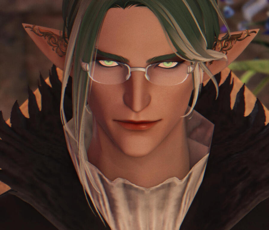 Over the years, after the tests ended and he was returned to civilian life, he continued to experiment on himself so he can better control his beast side. He realized that the easiest way to secure funding for his research was to pivot toward wellness and natural cosmetics, knowing that Ishgardians were vain and were constantly looking for ways to maintain their physical beauty. When he began to look younger himself, with the physical body of one decades younger, he was arrested on witchcraft charges, a trial by combat saving his life and proving the charges false. A great demand for his research and products began shortly after.Now well into his seventh decade with a pretty Vieran wife, Astre divides his time between special guest lectures in Sharlayan and Ishgard, serving as a doctor on the airship, Corsair (a change of pace from his work drudgery, he says), - with her, all while continuing to perfect both his longevity products.