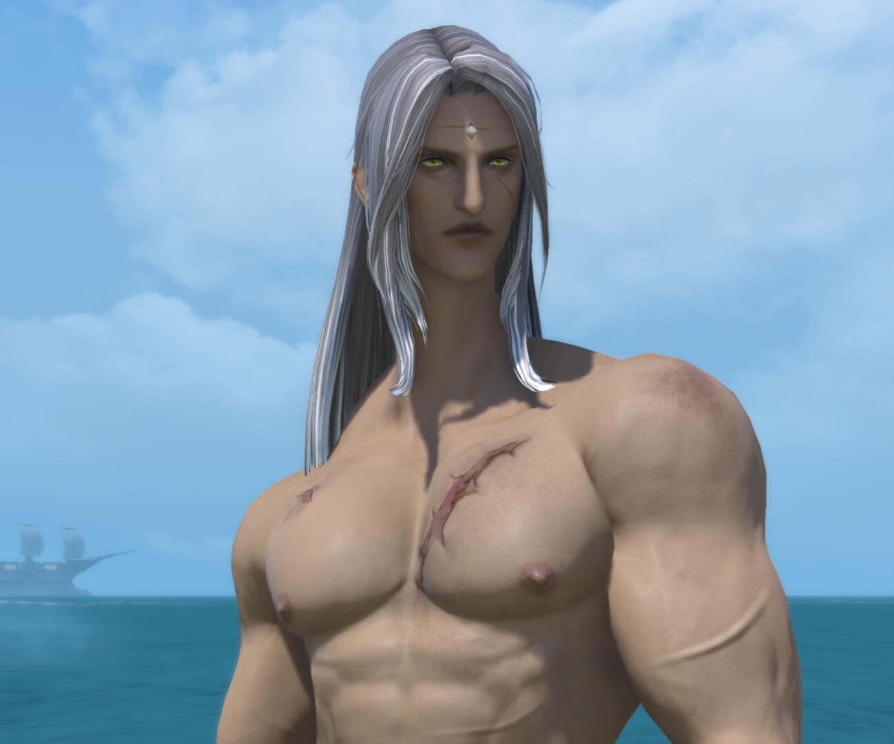 Monstrous - There are repercussions that comes with experimenting with one's body far too often than one should. Astre's body is riddled with scars both large and small; and being unable to heal them completely indicates how deep and terrible the wounds had been. Some injuries are from creature attacks, others carved by his own hand, often in emergencies where his life hung in the balance if he did not turn the knife on his own flesh.