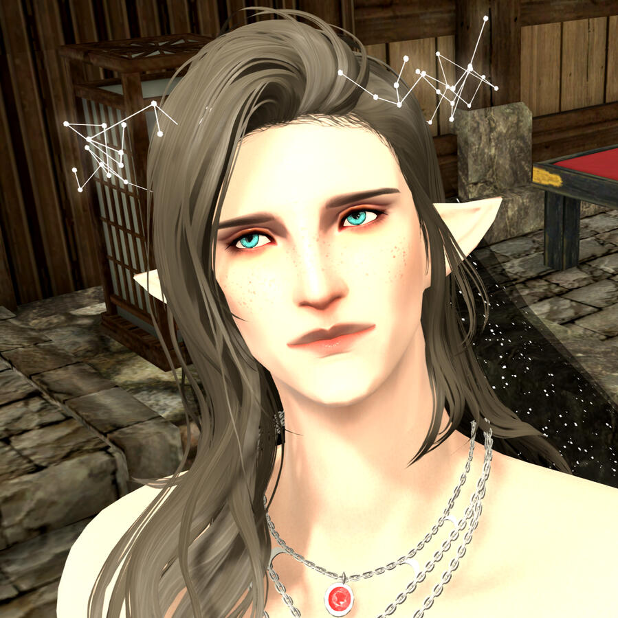 He was often commanded back into military duty however, especially when attempting to infiltrate Garlean territory. It was during one of these expeditions where he encountered a strange secret military base along Garlemald's boundary, and finding a man asleep inside a cryogenic chamber. For Astre, it was love at first sight. Freeing the man, he looked on with awe when the latter awakened - and began to lay waste to the facility and his former gaolers with abilities that seemed more ashkin than human. Recognizing that Astre had a similar bestial physiology as his own, the man took a liking to him, and their romance began.Attempts to find the man's identity proved futile, as the latter did not have much memories of his past; while Astre sought to learn the man's origins, his wife suffered an accident while visiting her parents, dying before she could return to their manor. After a period of mourning, Astre began to bring a beautiful young man named Dorian to social gatherings, calling him his fiance. It is with Dorian's blood assistance that he has been able to speed up his progress, his wife's longevity now affecting his own lifespan. Always careful not to be held liable, he has not used Dorian's 'help' in any of the publicly available research and products he provides - for now.Now well into his seventh decade with a never-aging wife (oft attributed to the salves and concoctions Astre had created) Astre divides his time between special guest lectures in Sharlayan and Ishgard, serving as a doctor on the airship, Corsair (a change of pace from his work drudgery, he says), and continuing to perfect both his longevity products.